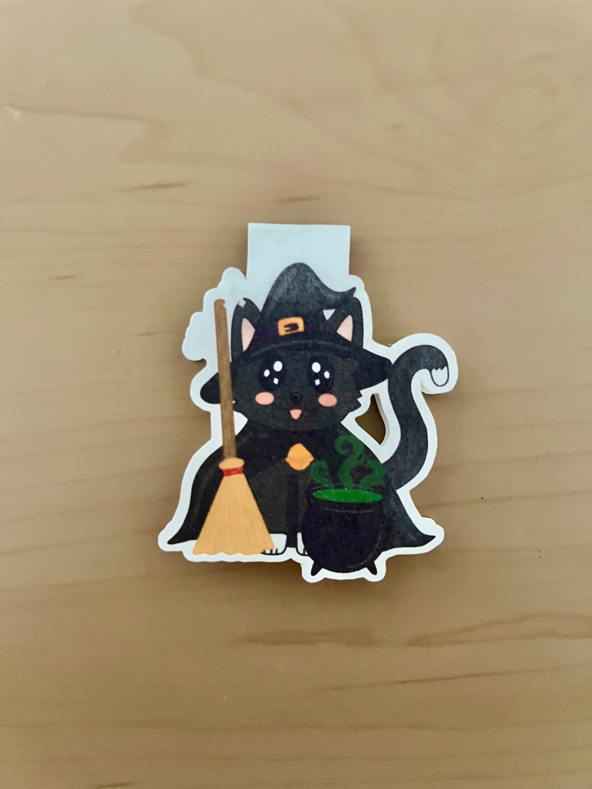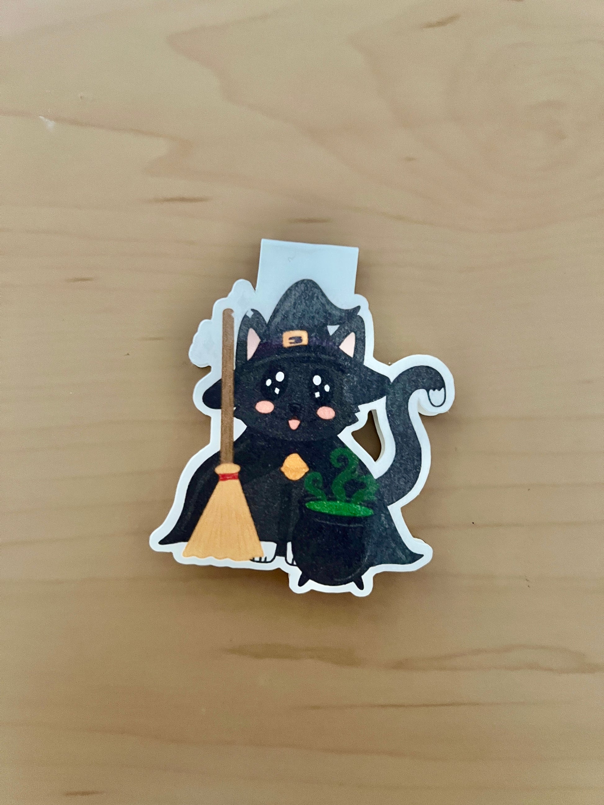 Callie Cat Witch Magnetic Bookmark - Cute Halloween Black Cat Bookmark